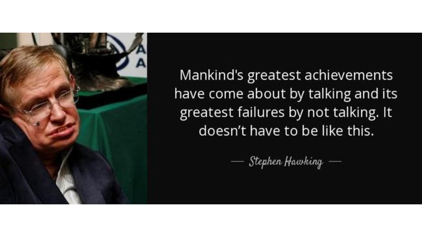 Mankind's greatest achievements have come about by talking and its greatest failures by not talking. It doesn't have to be like this.
